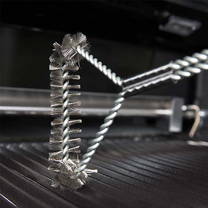 45.7 cm long with soft comfort rubber handle. 16.5 cm large stainless steel twisted bristle head cleans deep into corners of the barbecue.